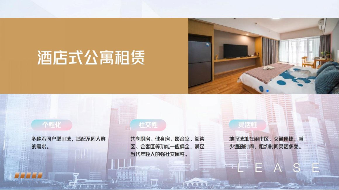 积极响应政府的繁荣租赁市场政策,满足年轻客群的居住需求,年轻化、个性化、灵活度高的模式。昆寓酒店式公寓租赁业务,小而精的产品类型....